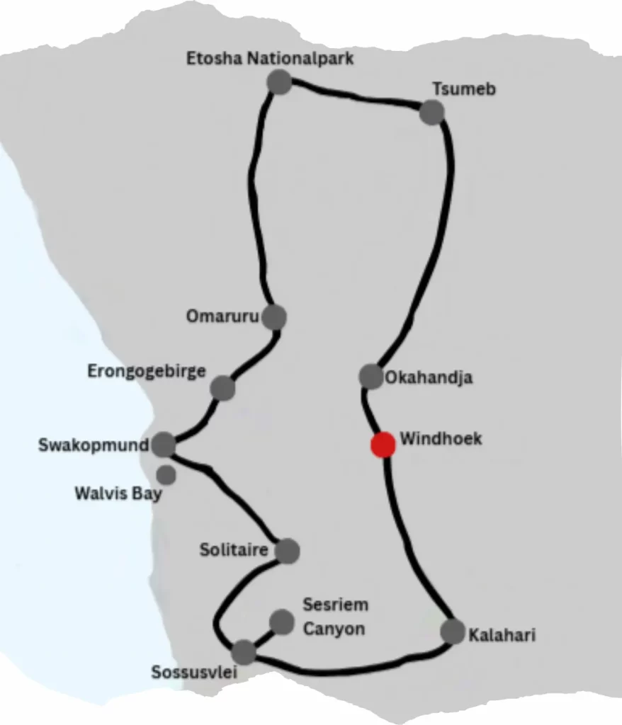Entdecken Sie Namibia mit Namib-Wüste, Etosha-Nationalpark, Swakopmund und Windhoek – Safari, Weite und deutsche Geschichte erleben.